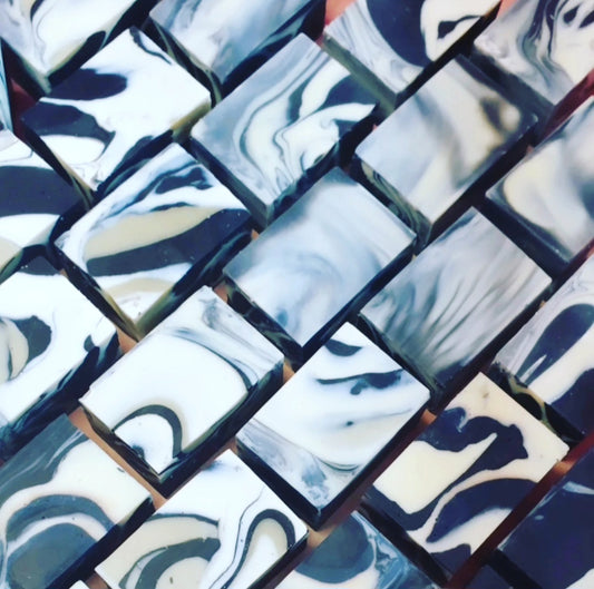 KISS ME PLEASE #108 Geranium-Bourbon-Aktivkohle-Seife ART SOAP mit Litsea, Zeder, Kakaobutter und Mandelöl, beduftet, 140 g