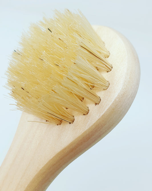 GESICHTSBÜRSTE AUS HOLZ, mit Naturborsten und Kordel zum Aufhängen, ca. 13x4x3 cm